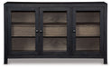 Add layers of form and function to your space with this accent cabinet. It's draped in a black finish on the outside and a warm gray finish inside, for a classic look that seamlessly transitions from casual to modern styles. This accent cabinet's flexible design includes three doors and two shelves for simple and streamlined storage.