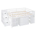 Full Size Loft Bed With Retractable Writing Desk And 3 Drawers With Storage Stairs And Shelves - White
