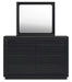 | Details | Includes dresser and mirror, Made with pine solids, veneers and engineered wood substrate, Textured black wood stain with waxy topcoat, Hardware-less design, 6 drawers with fully finished interiors, dovetail construction and ball-bearing side glides (top drawers felt lined), Mirror attaches to back of dresser | |