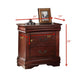 - Elegant Design: The Louis Philippe Cherry Finish Nightstand features a classic design with antique brass metal handles, offering a sophisticated and timeless appearance that complements various bedroom styles.