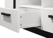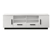 - Immerse your living space in timeless elegance with the Matilda TV Stand. Equipped with two spacious drawers, it offers ample storage for your media accessories, keeping your space clutter-free and organized. The two cabinets, each boasting an adjustable shelf, provide versatile storage solutions, allowing you to customize the arrangement to suit your needs. Contrasting boldly against the luminous white surface, the sleek black base adds a modern touch, creating a striking visual contrast that enhances the overall aesthetic appeal. Elevate your entertainment experience while infusing your home with refined charm with the Matilda TV Stand.