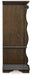| Details | Made with hardwood solids, oak and ash swirl veneers, MDF substrates and cast resin components, Dark brown finish, 5 smooth-gliding drawers with dovetail construction (top drawer felt lined), Drawer pulls with antiqued goldtone finish | |