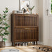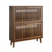 Medieval - Modern Shoe Storage Cabinet With 2 Flip Drawers And Fence Design - Walnut
