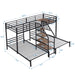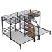Twin Over Twin & Twin Bunk Bed With Storage Shelves And Staircase, 3 Deck Design - Black