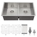Double Bowl Undermount Kitchen Sink 33" X 19" With 16 Gauge And Deep Basins - Brushed Nickel