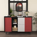 Sideboard Buffet Cabinet With Doors And Unique Panel Styling - Black / Red