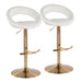 Posh - Contemporary / Glam Adjustable Barstool With Swivel With Rounded T Footrest (Set of 2) - Gold / White
