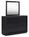 | Details | B768B2: Includes headboard, footboard and rails, Made with pine solids, veneers and engineered wood substrate, Textured black wood stain with waxy topcoat, Extra wide rails for a bench-like wrap around, Foundation/box spring required, sold separately, Mattress available, sold separately, Assembly required, B768B1: Includes dresser and mirror, Made with pine solids, veneers and engineered wood substrate, Textured black wood stain with waxy topcoat, Hardware-less design, 6 drawers with fully finished interiors, dovetail construction and ball-bearing side glides (top drawers felt lined), Mirror attaches to back of dresser, B768-46: Made with pine solids, veneers and engineered wood substrate, Textured black wood stain with waxy topcoat, Hardware-less design, 5 drawers with fully finished interiors, dovetail construction and ball-bearing side glides (top drawers with felt-lined bottoms), B768-92: Made with pine solids, veneers and engineered wood substrate, Textured black wood stain with waxy topcoat, Hardware-less design, 2 drawers with fully finished interiors, dovetail construction and ball-bearing side glides, 110V power supply with dual USB charging ports, Power cord included; UL Listed, | |