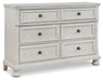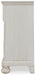 Elegant, timeless furnishings take your bedroom to the next level. Nothing does that better than this dresser. The antiqued white finish with a wonderful grain texture radiates sophistication, while dark bronze-tone knobs add an ornate touch. Felt finishing in the upper drawers rounds out this tasteful piece.
