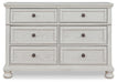 | Details | Made with wood, select oak veneer and engineered wood, Antiqued white finish with grain texture, 6 smooth-gliding drawers with dovetail construction and metal ball-bearing side glides (upper drawers with felt bottoms), Dark bronze-tone knobs | |