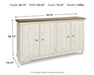 Whether your style is cottage chic, boho inspired or uniquely eclectic, this accent cabinet is sure to look right at home. Standout elements include raised panel door fronts that are a work of art. Wonderfully timeworn in antique white, this 4-door cabinet is topped with a warm brown finish for two-tone interest. Two adjustable shelves add to its practicality.