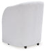 Inspired by art deco design, this fully upholstered dining chair makes a lasting impression in a simply stunning way. Its magnificent curved silhouette is enhanced with a neutral boucle upholstery that’s so pleasing to the palate. This is the piece you’ve been looking for to elevate your contemporary decor whether you’re dining, listening to your latest playlist or binge-watching with friends. Plus, it’s set on casters so it’s easy to move around.