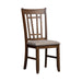 Wow family and friends with the Santa Rosa II rectangular table set. Crafted of rubberwood solids and oak veneers, this set features an antique honey finish and consists of the leg table and four lattice back side chairs.