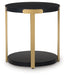 Details Includes coffee table and 2 end tables, Made with melamine laminate top and MDF substrates, Textural black wood grain pattern, Metal legs with durable goldtone powder coat finish, Lower display shelf, Coffee table with casters for easy mobility