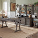 Work from home or the office in comfort and style with the Stone Brooke Set. Crafted of acacia and rubberwood solids with white oak veneers, this set features a rustic saddle finish, antique pewter recessed pull hardware, full extension drawer glides for easy access to storage, and light distressing. The desk offers a flip down keyboard tray, and a unique cement insert. The credenza features a lateral file, two drawers, and a timeless sliding door that opens to reveal adjustable shelving. Mixed materials of the concrete with the saddle finish give Stone Brook a modern rustic feel.