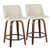 Toriano - Mid-Century Modern Fixed Height Counter Stool With Swivel With Round Footrest (Set of 2) - Walnut / Cream / Black