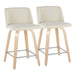 Toriano - Contemporary Fixed Height Counter Stool Swivel With Square Footrest (Set of 2) - Natural / Cream