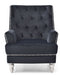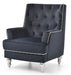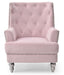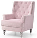This chair features a classic design with button tufted back and hand applied nailheads for a stylish traditional look. -