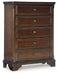| Details | Made with hardwood solids, select hardwood veneer and MDF substrate, Warm brown cherry finish, Decorative metal drawer pulls with dark bronze-tone finish, 5 drawers with fully finished interior, dovetail construction and heavy duty ball-bearing side glides | |