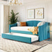 Twin Size Upholstered Daybed Sofa Bed With Trundle And Slat - Blue