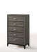 • Spacious Drawers: This chest boasts five roomy drawers, each equipped with a center metal glide system for smooth operation. The 3/4 extension allows for easy access to your belongings.