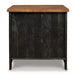 | Details | Made with pine veneers, pine wood and engineered wood, Two-tone distressed finish (light brown top and rustic vintage black base), Double door cabinet with metal grills and hardware, Center shelf, Assembly required | |