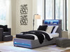 Snooze in style with this twin upholstered bed. It brings delightful function to winding down before bedtime, with an adjustable LED reading light on each side. And for added flair, multicolored ambient lighting brings an ultra-cool vibe to the overall look. Combining modern convenience with captivating design, this bed revamps your restful retreat like never before.