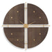 This Unique Clock Is A Harmonious Blend Of Form And Function, Divided Into Four Seamlessly Pieced Sections, Each Graced With A Luxurious Walnut Veneer. The Intersecting Iron Rods Add A Touch Of Sophistication, Finished In A Radiant Metallic Gold. Quartz Movement Ensures Accurate Timekeeping. Requires One "AA" Battery.