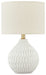 Fresh and light, the dimensional design of this delightful ceramic table lamp borrows from a retro theme to update a transitional space. Made of ceramic with an antiqued white finish, this accent lamp infuses personality into any setting. Add it to a console or end table and bring out the bright in any decor.
