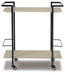 | Details | Made with engineered wood and melamine laminate, Light natural wood grain effect, MEGA-TUFF® melamine surfaces are made of easy-clean melamine which is heat-, scratch-, water- and stain-resistant, Metal frame with black finish, 2 shelves, 2 bottle holders, Locking casters, Assembly required | |