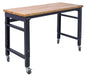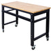 48" Wide Rolling Workbench For Garage, Adjustable Height, Workshop Tool Bench, Metal With Rubber Wood Top - Black / Light Brown