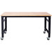 60" Wide Rolling Workbench For Garage, Adjustable Height, Workshop Tool Bench, Metal With Rubber Wood Top - Black / Light Brown