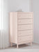 Pretty in pink. This chest of drawers keeps the spirit of your home’s modern aesthetic while suiting all your young one’s needs. Its subtle blush finish brings a playful, charming vibe to organizing clothes and other essentials. Made for her and styled for you, it’s a lovely addition to a beautifully chic child’s bedroom.