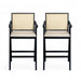 Woven Cane Plastic Backrest Bar Stool Foam Padded Fabric Seat & Durable Rubberwood Frame - Cream Gray
