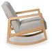 This accent chair is an easygoing beauty. Its sleek rocking chair profile with solid wood legs is perfect for living rooms, nurseries or any space where you want to relax and unwind. And with easy-to-clean Next-Gen Nuvella™ fabric, upkeep is a breeze.