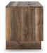 Nostalgic style, retooled for today’s trends. This TV stand puts an elevated twist on mod aesthetics. Its warm brown tones reflect the mid-century vibes you love, while the angular base incorporates contemporary motifs. Integrated drawer handles round out the look in sleek style. With this TV stand, you can build your living room into a modern haven with a touch of retro-cool flair.